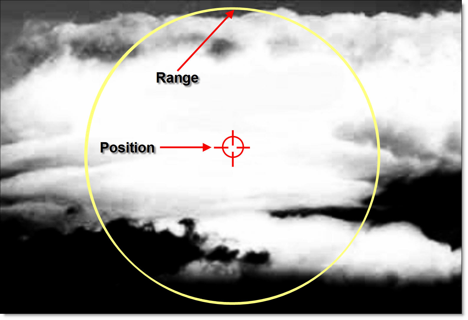 In addition to using the slider controls in the Toolbar, the Position, Range and Radius parameters can be set using on-screen controls. Click on the image to place the on-screen control which consists of a center point and a solid circle. The Position value is set by the location of the center point, while the Range is set by sizing the circle. The larger the circle, the larger the range.