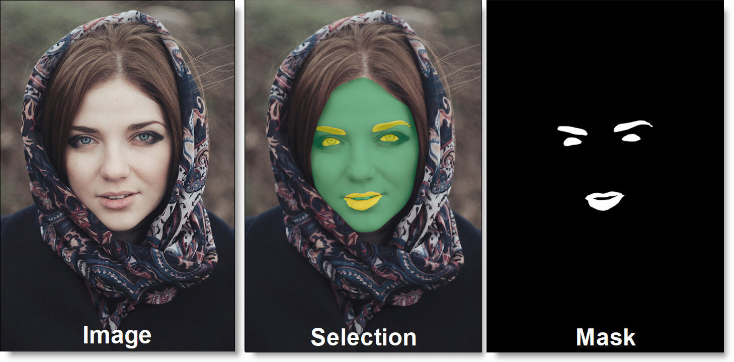 Segments facial regions--such as the eyes, lips, and mouth--into individual matte layers, enabling precise effects.