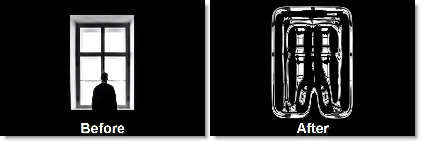 Warps the image based on its gradient. By default, brighter areas are puffed out and darker areas are shrunk.