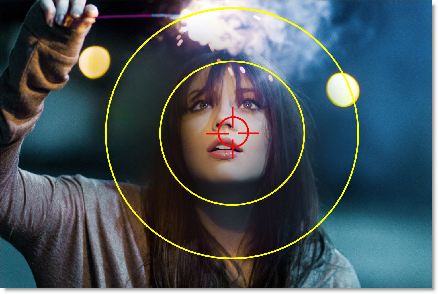 The un-blurred radius of the spot is controlled using the inner on-screen circle.